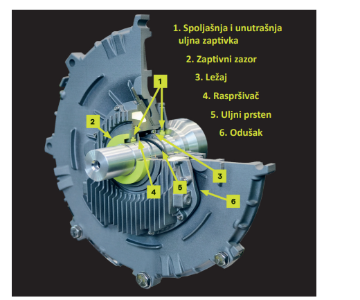Umesto masti koja se koristi za podmazivanje, u ležajeve je ugrađen uljni prsten koji omogućava kontinuirano podmazivanje. Ovo omogućava da motori imaju manju radnu temperaturu, veću pouzdanost i znatno manje održavanje.