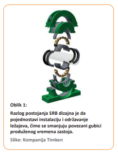 Zahvaljujući njihovom jedinstvenom, “podela na osovini“ dizajnu, lako je instalirati, održavati i zameniti dvodelne cilindrično valjkaste ležajeve SRB ležajeve, bez potrebe za podizanjem ili uklanjanjem osovine iz pogona da bi se dobio pristup.