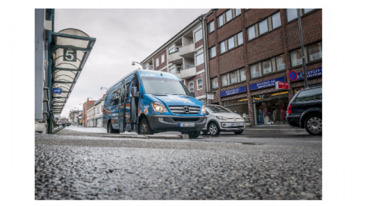 Potpuno električno vozilo koje nema vozačko sedište ili volan, ima "pratioca" koji može da upravlja minibusom ručnim upravljačem ako je potrebno. Okrug nudi taj prevoz kao deo pilot-programa finansiranog iz grantova za procenu kako autonomna vozila mogu da dopune sistem javnog prevoza.